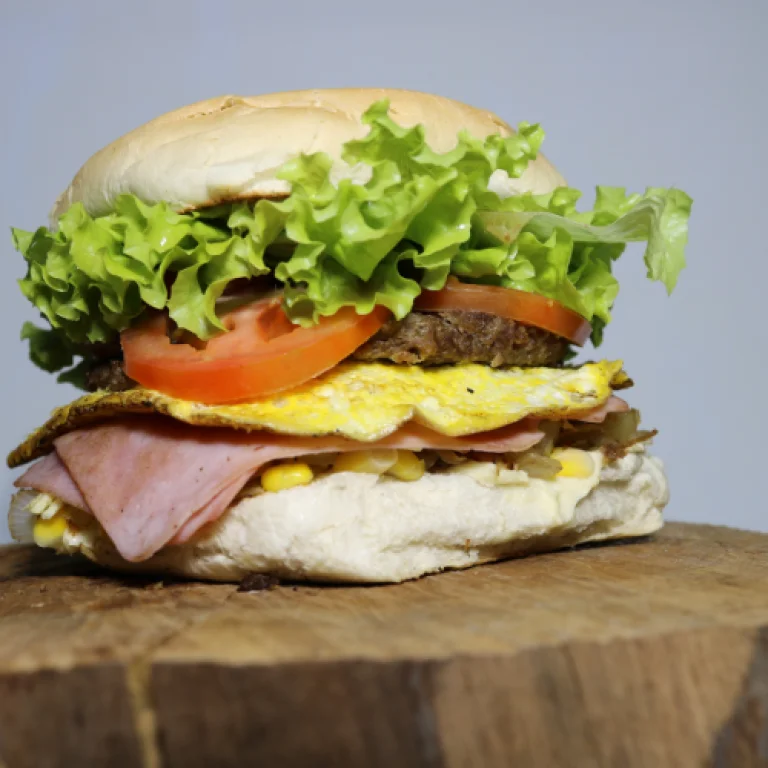 PÃO, HAMBURGUER, MAIONESE, MILHO, OVO, QUEIJO, PRESUNTO, BACON, ALFACE, TOMATE,...